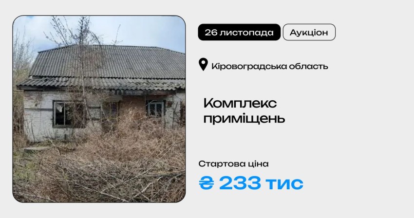 Стартова ціна – 233 000 грн без урахування ПДВ