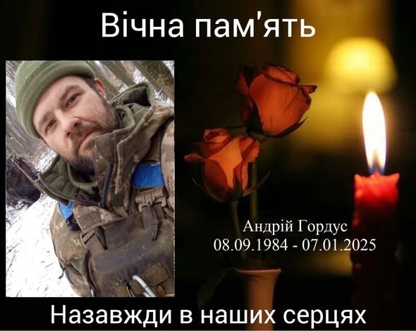 Старший сержант Андрій Гордус, командир механізованого відділення, загинув 07 січня 2025 року, виконуючи свій військовий обов'язок в районі населеного пункту Колмаков Курської області.