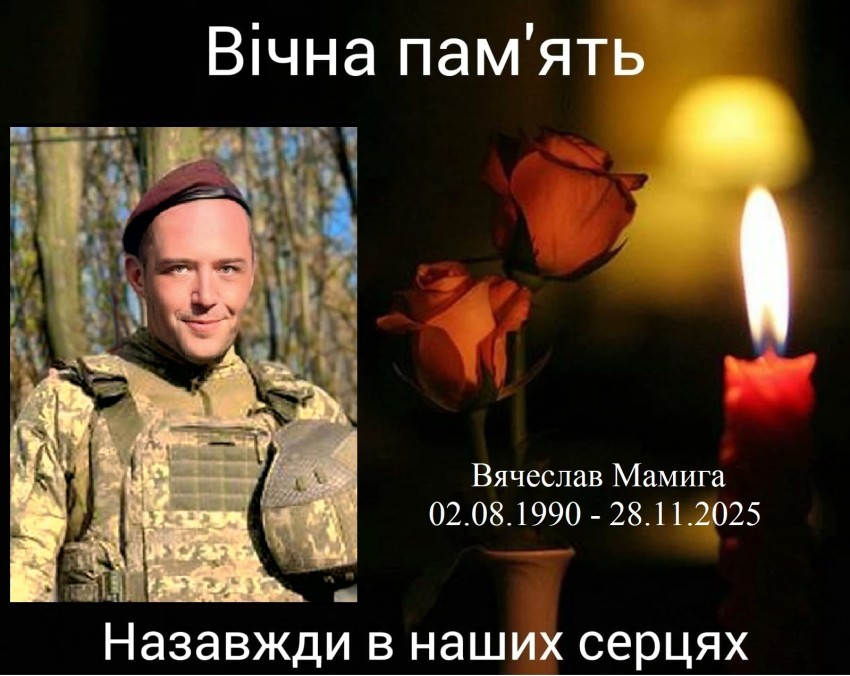 Солдат Вячеслав Мамига, водій мінометного взводу, загинув, 28 листопада 2025 року, зупиняючи російських агресорів поблизу села Нова Круглянівка Ізюмського району Харківської області.