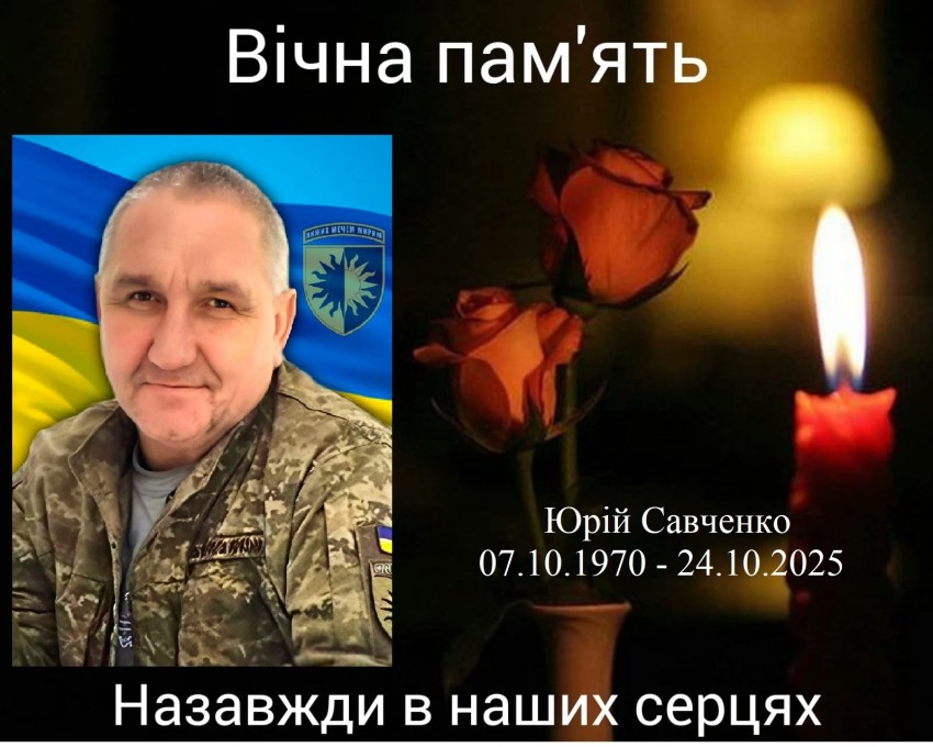 Сержант - мінометник Юрій Савченко, 1970 року народження, загинув смертю хоробрих 24 жовтня 2025 року, виконуючи бойове завдання в районі населеного пункту Катеринівка Сумської області.