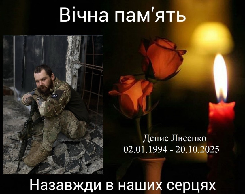 Солдат Денис Лисенко, 1994 року народження прийняв свій останній бій 20 жовтня 2025 року, виконуючи бойове завдання із захисту Вітчизни від російських агресорів.