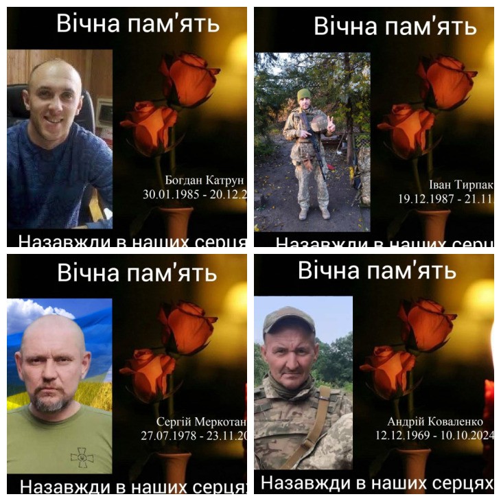 Кропивницький прощатиметься із загиблими захисниками України - Сергієм Меркотаном, Андрієм Коваленком, Іваном Тирпаком, Богданом Катруном. Про це повідомили у міськраді.