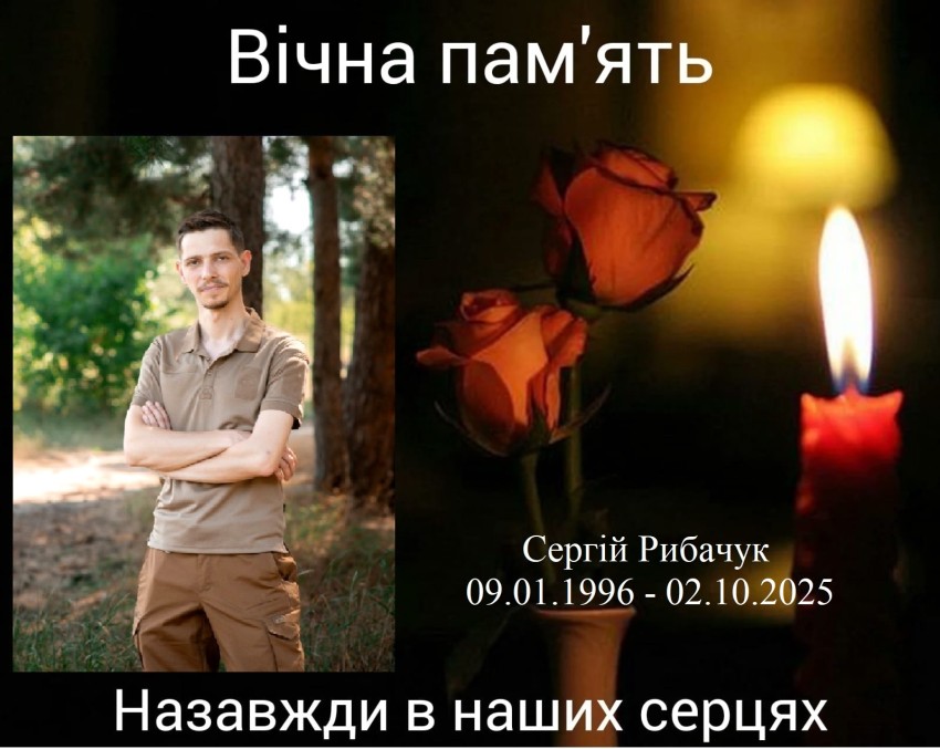 Солдат Сергій Рибачук, мінометник батальйону територіальної оборони, помер у госпіталі 02 жовтня 2025 року від вибухової травми, яку отримав під час виконання бойового завдання.