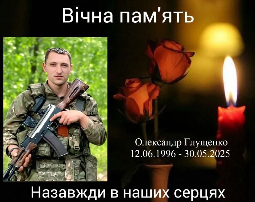 Солдат Олександр Глущенко, стрілець- гранатометник, загинув 30 травня 2025 року зупиняючи російських агресорів поблизу села Новомихайлівка Краматорського району Донецької області.