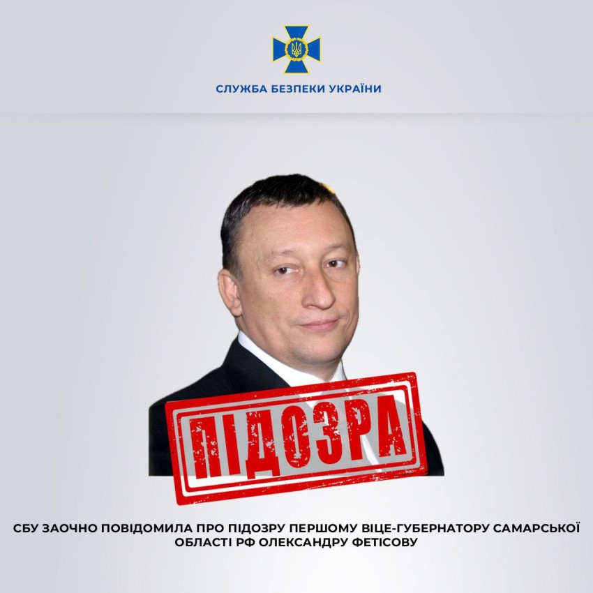 Служба безпеки України зібрала доказову базу та заочно повідомила про підозру першому віце-губернатору Самарської області рф Олександру Фетісову, який фінансував терористичну діяльність окупаційних військ. Про це повідомили у відомстві.