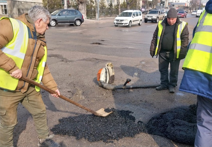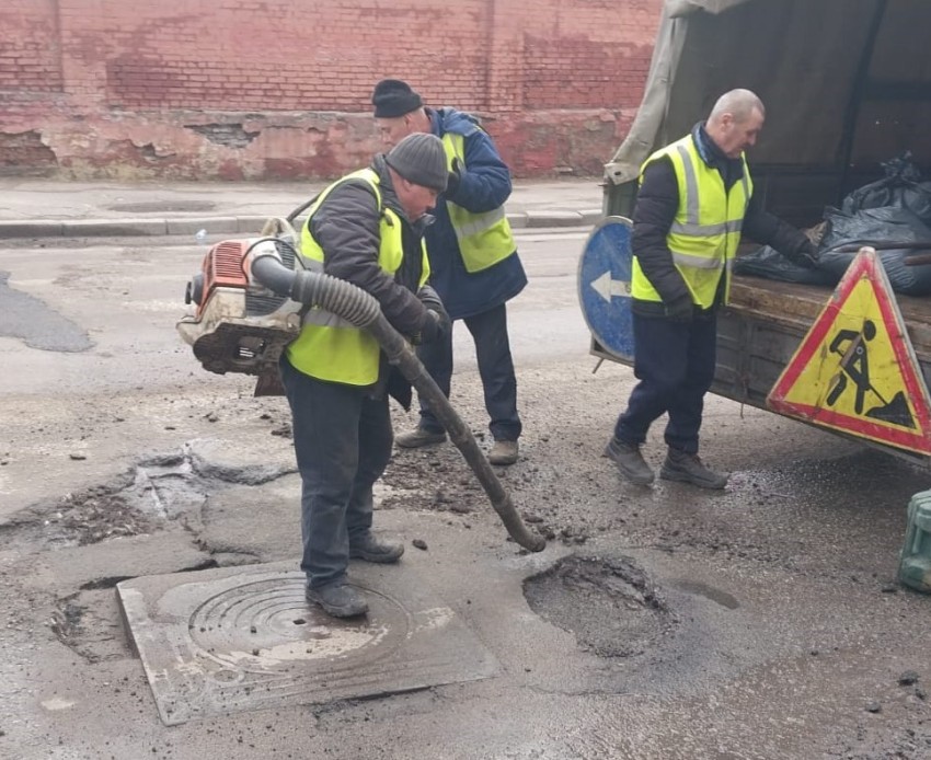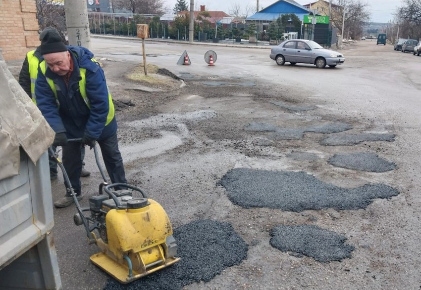 Фахівці працюють методом холодного асфальтування, оскільки температурні показники ще не дозволяють використовувати гарячі суміші.